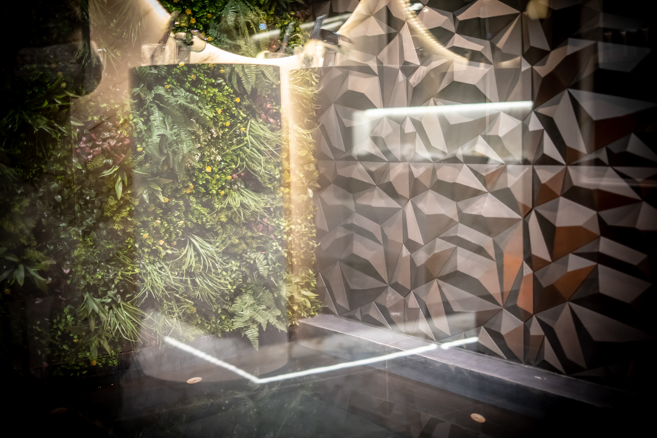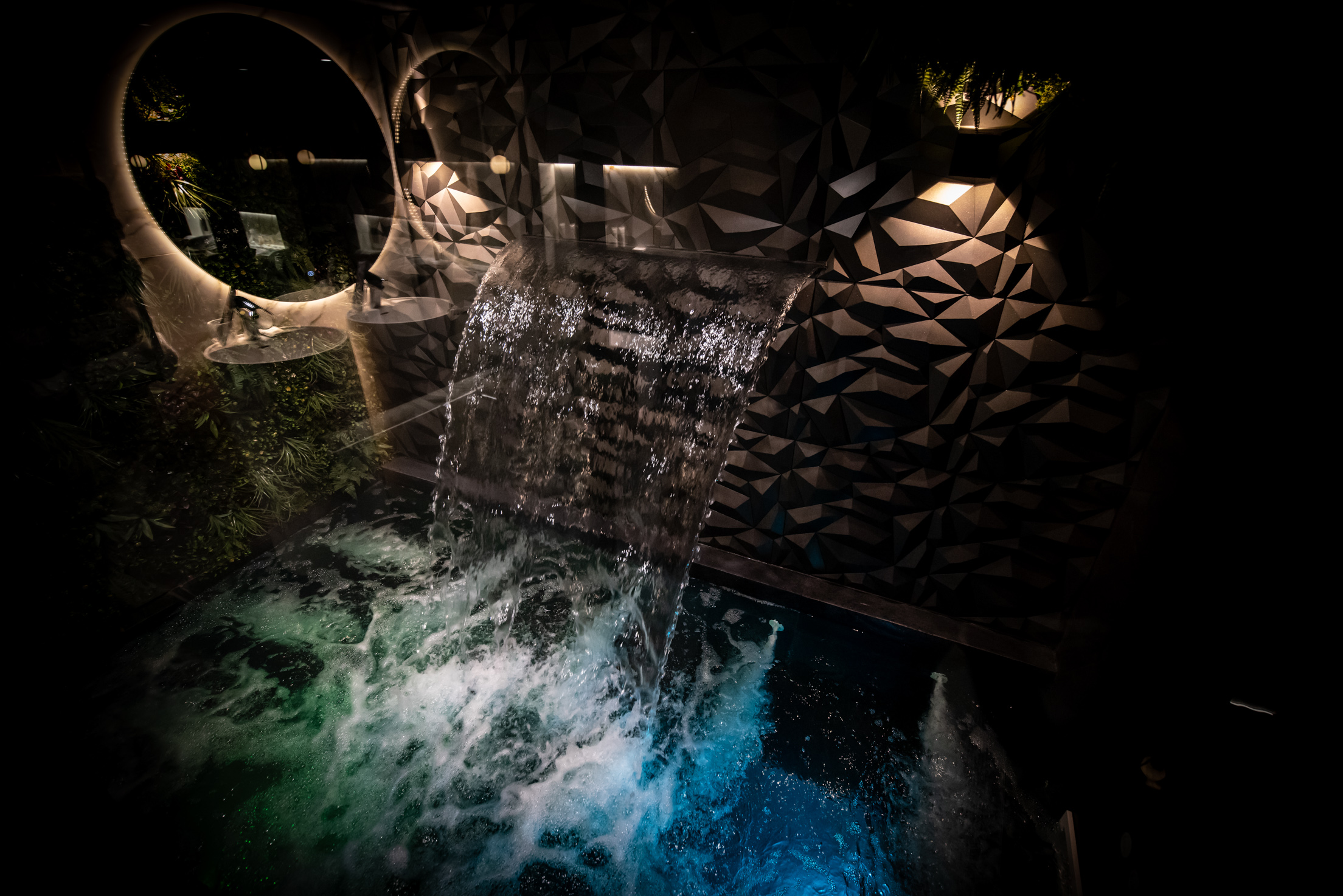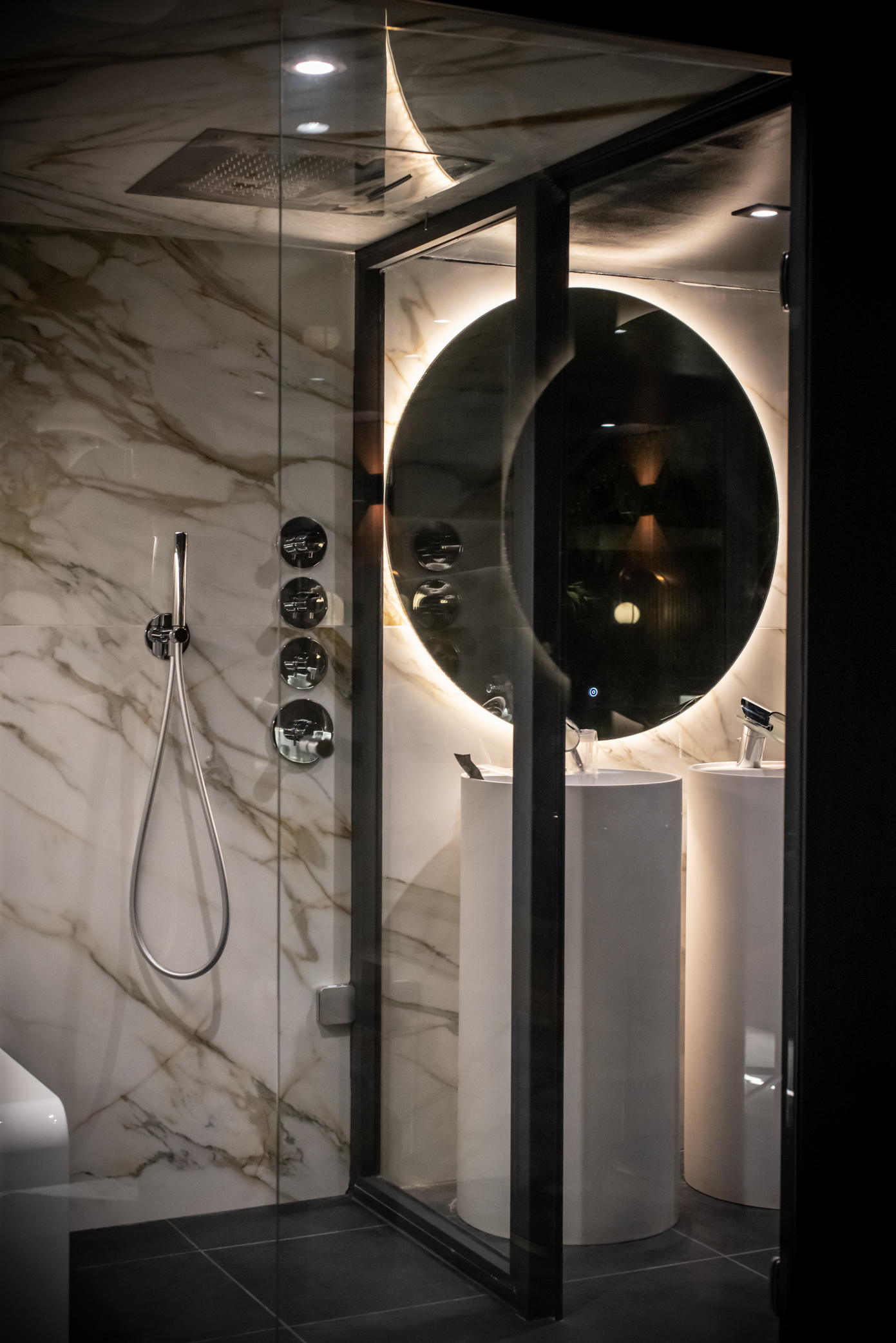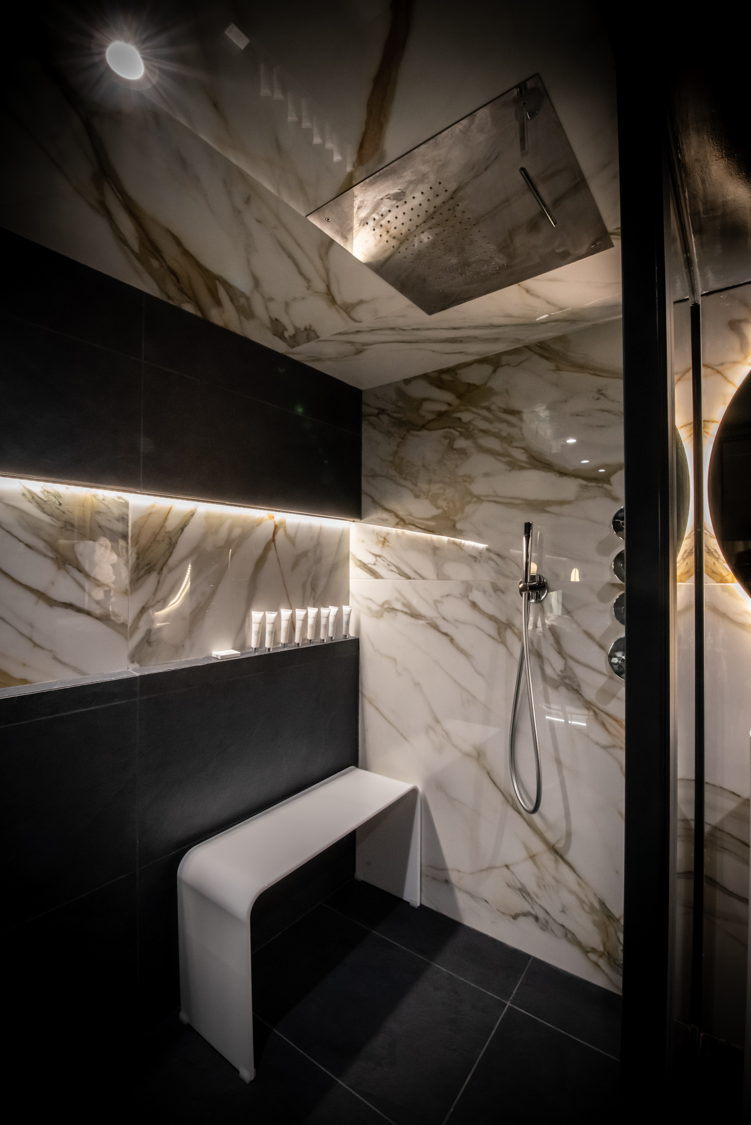 - Douche XXL avec double vasques et cascade intégrée